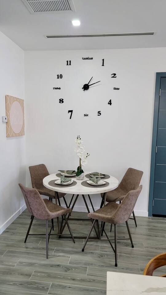 Apartment was a pleasure to walk into - very clean, comfortable and tastefully furnished just as the pictures, with thoughtful welcome items waiting us such as water and toiletries. Hosts ensured we had a great stay and provided a helpful folder of information.